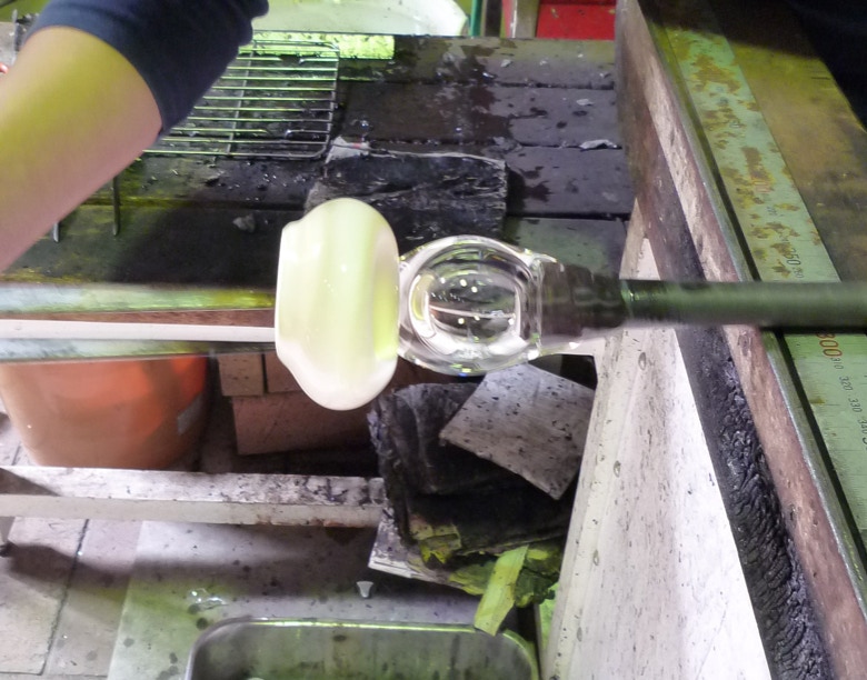 色ガラスの底の部分だけを柔らかくして双方のお尻同士をくっつけます。